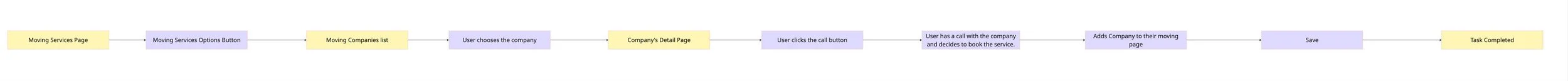 The goal of this flow was to ensure a smooth, intuitive journey that minimized friction and guided users through the moving process step by step. It helped me identify decision points, key screens, and potential bottlenecks before moving into wireframing.